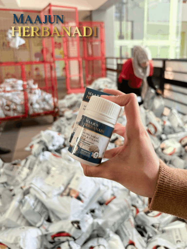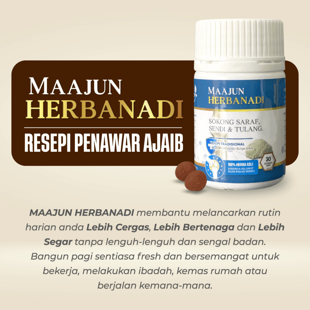 MAAJUN HERBANADI diperkayakan dengan herba Cendawan Kubis Bunga yang membantu membaiki saraf.